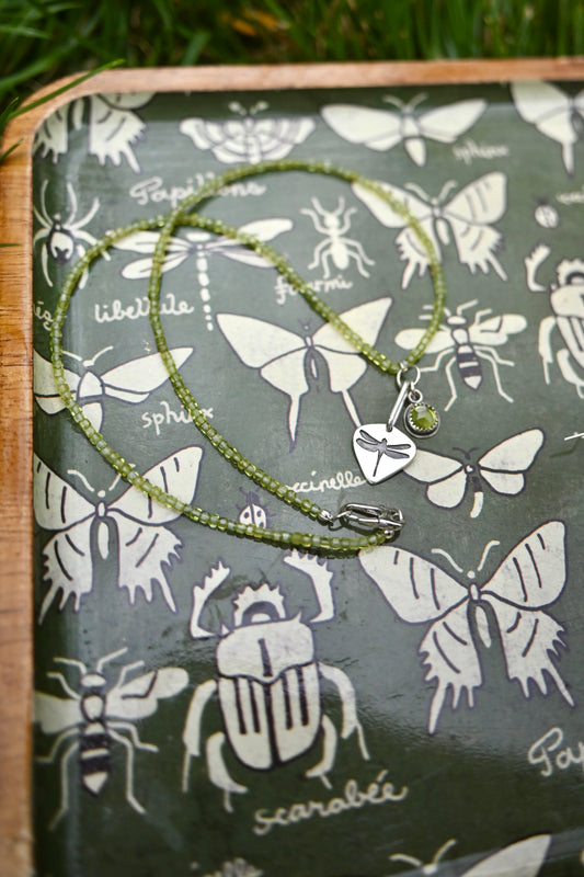 Dragonfly + Peridot Necklace - 20 inches