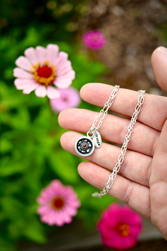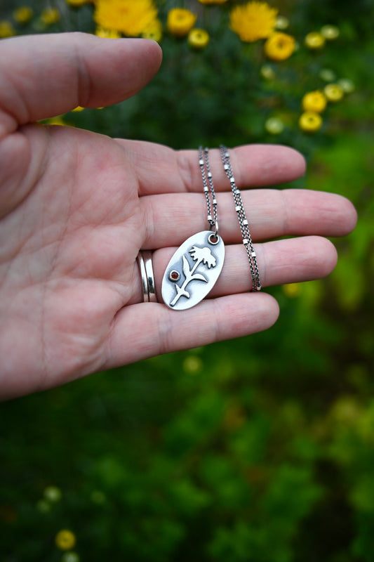 Shadowbox Zinnia + Garnet Necklace