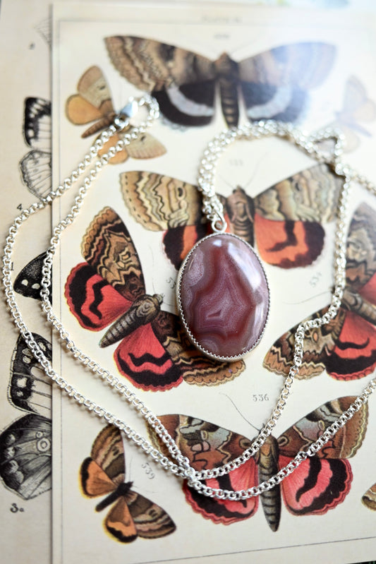 Stag Beetle + Agate Necklace - 24 inches