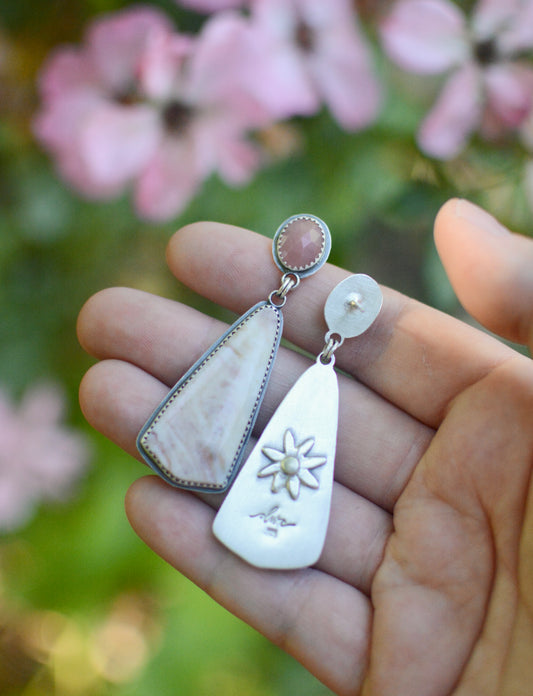 Ocean Jasper + Guava Quartz + Daisy Flowers Earrings