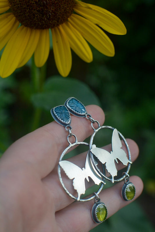Swallowtail Butterfly + Kyanite + Vesuvianite Hoop Earrings