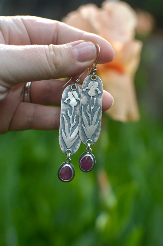 Iris + Pink Sapphire Earrings