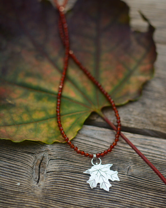 Maple Leaf + Carnelian Beaded Necklace