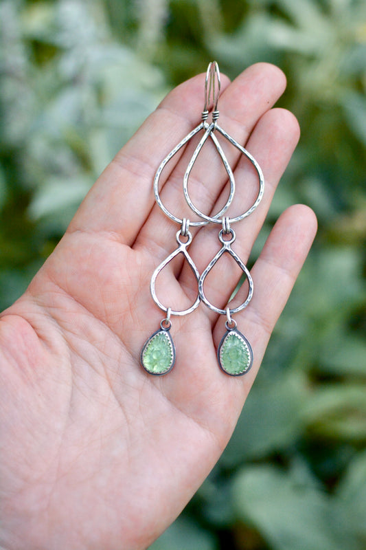 Green Kyanite + Double Teardrop Hoop Earrings